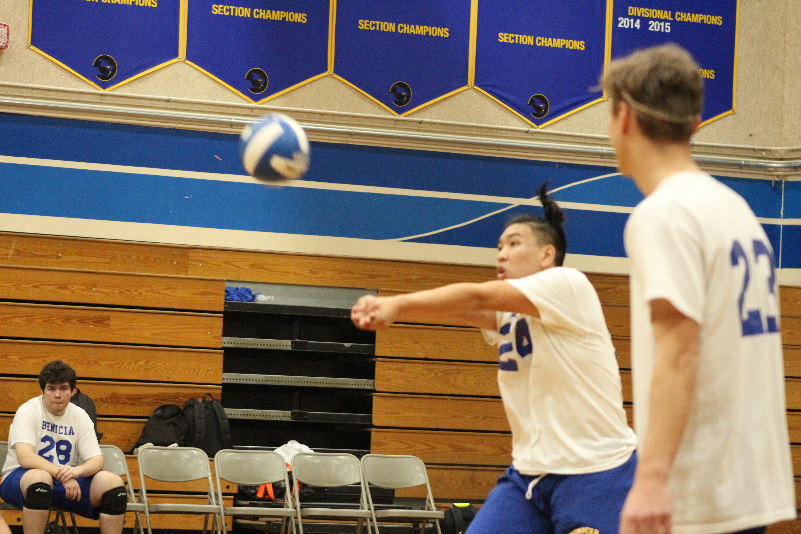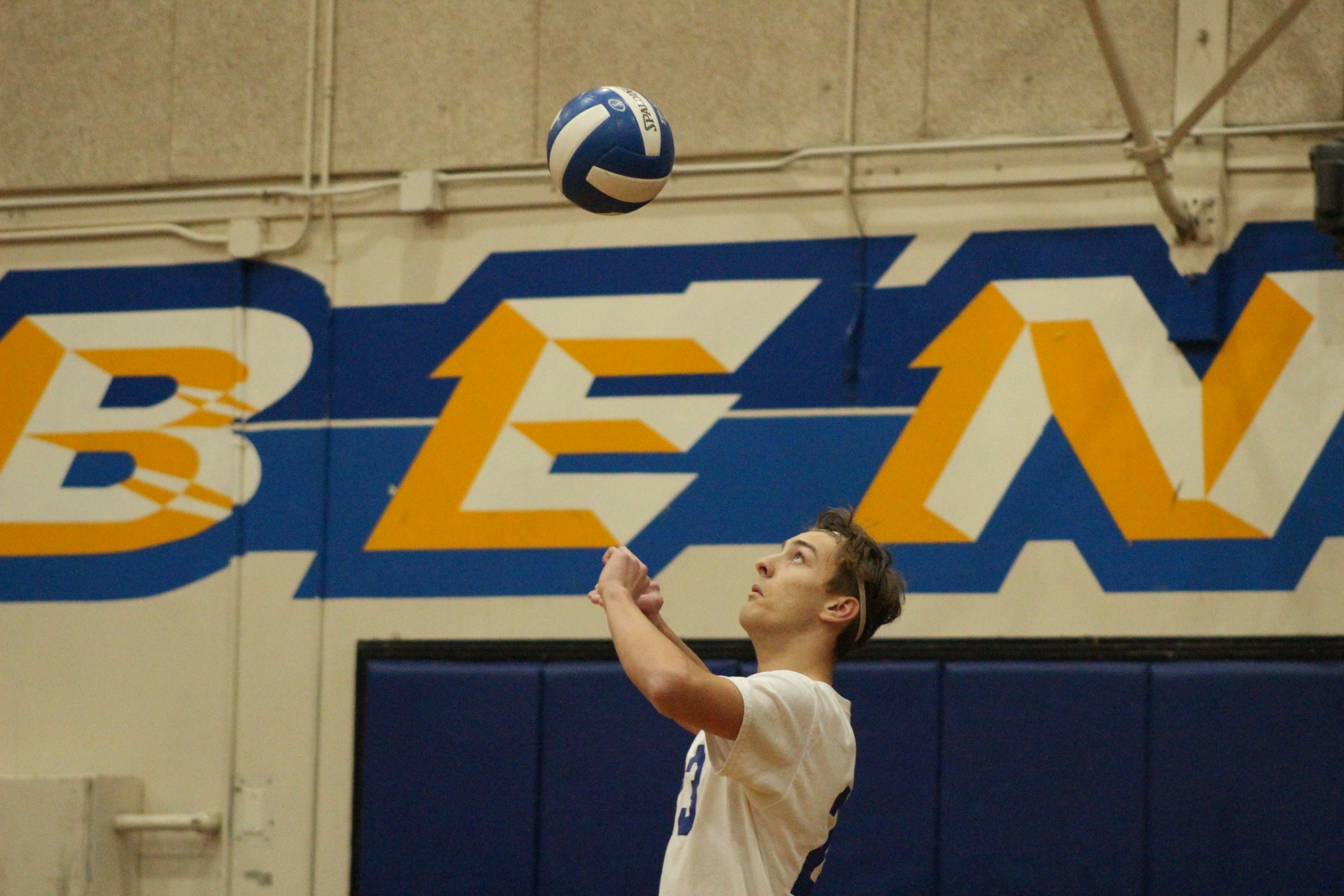 Michael Upton (12) deep in thought…. about Volleyball?
