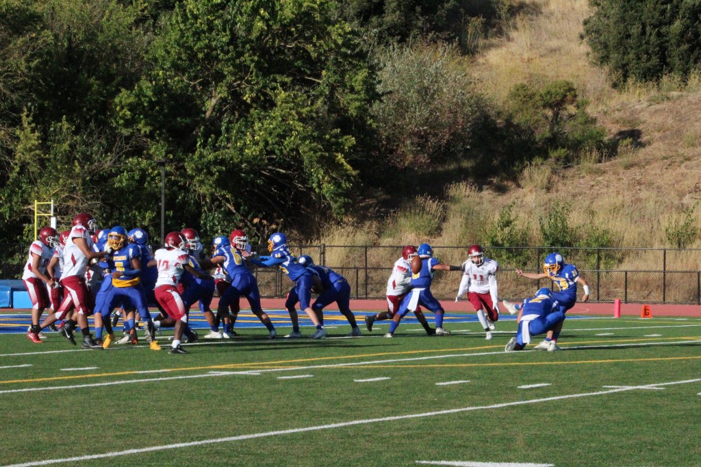 Benicia Panthers and the Diablo Red Devils charge at the start of the 2nd quarter.