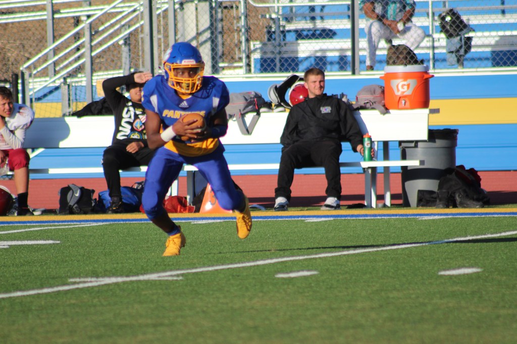 Landen Croinex (2) rushes forward in a successful attempt at a touchdown.
