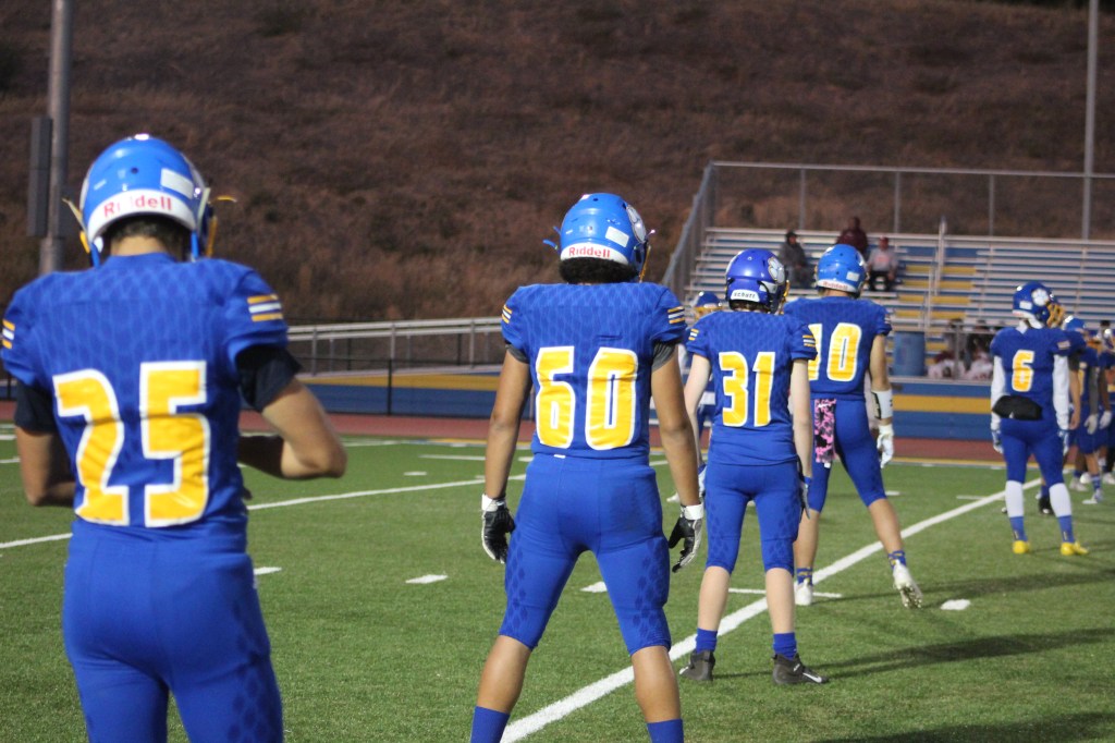 Lani Sandoval (6) and Julius Carroll (5) stare at the field from the side lines.