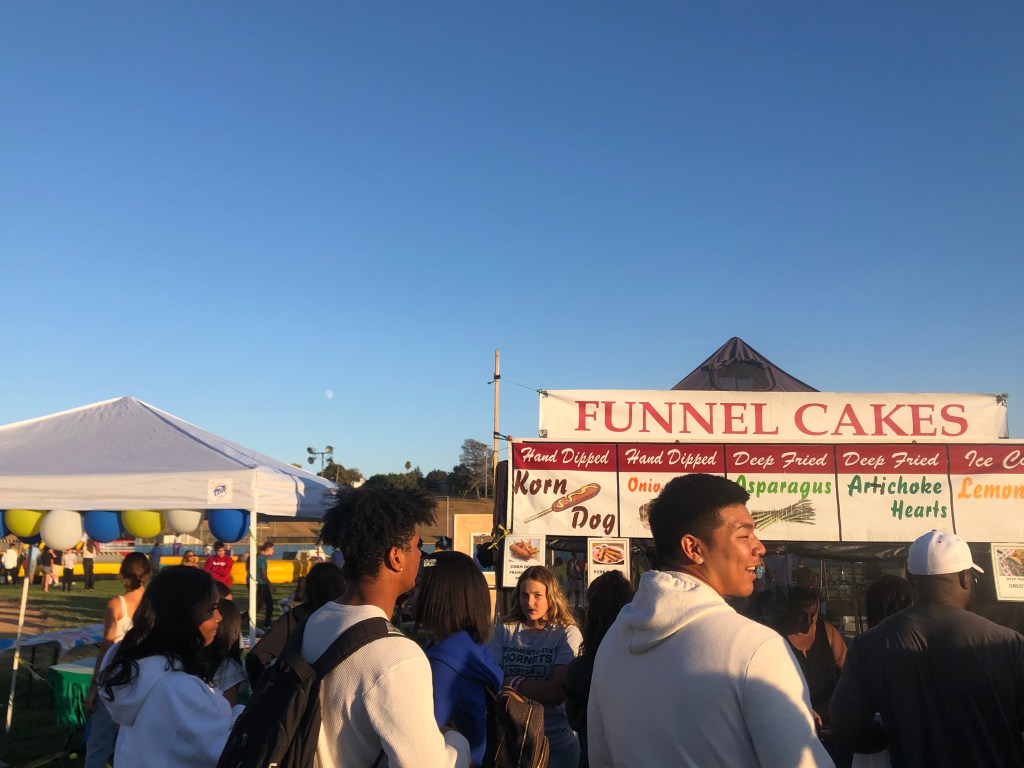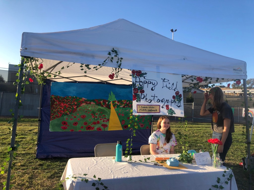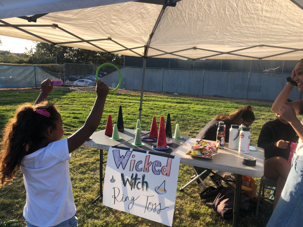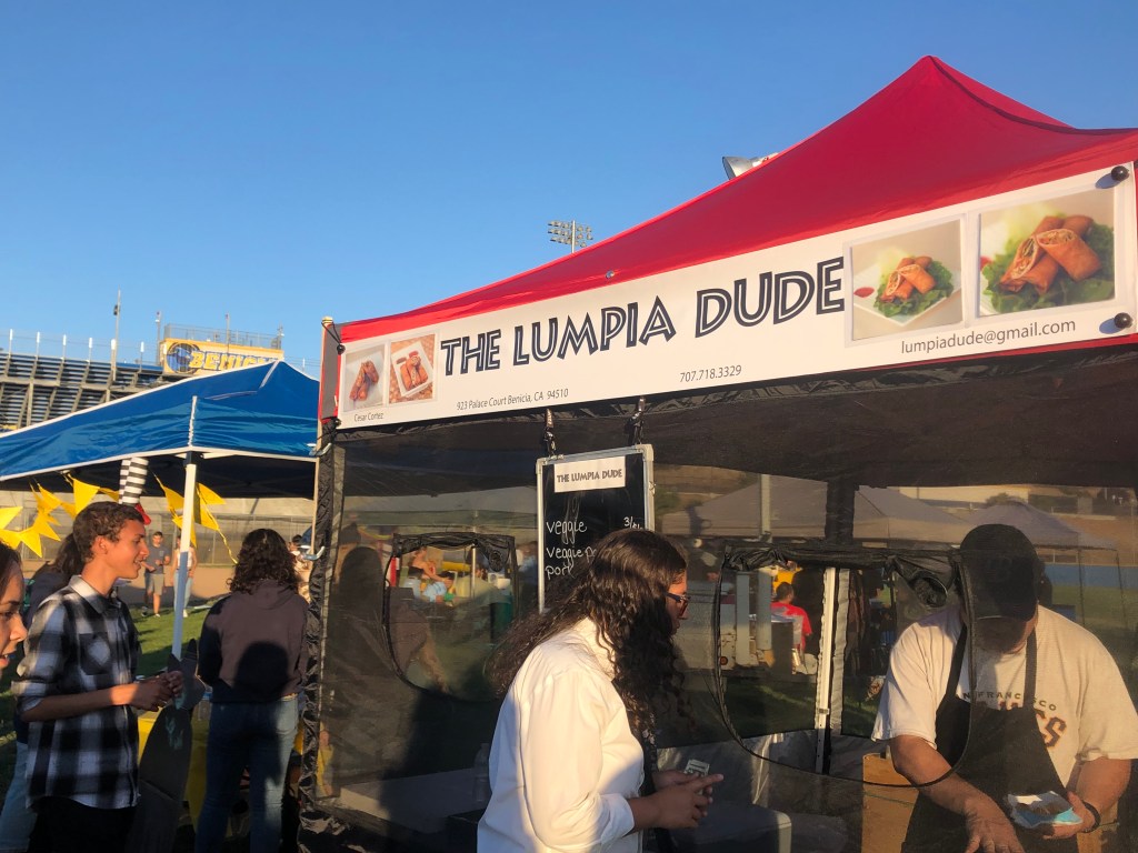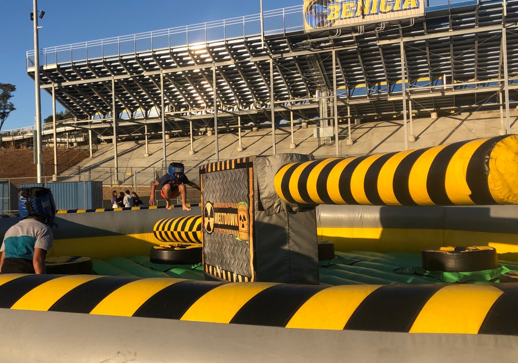 12th graders Kelsea Macdonald and Sarah Jury promoting their “Poppy Field Photography” club.Celebrating a win at the Wicked Witch Ring Toss!The Lumpia Dude serving delicious food to a long line of hungry and happy students.A firetruck bouncy slide providing fun for people of all ages!After many students’ attempts, one student finally managed to dunk Mr. Sinats into the dunk tank.Bouncy houses providing fun jumping challenges for the younger kids who attended.12th grader Chloe Cheung welcoming students to join the Asian Culture Club.Another long line of eager students ready to try some delicious funnel cakes and more.Panther TV offering free face painting! Signs to get people into the spirit of Benicia High school’s colorful Homecoming theme: “The Wizard of Oz.”