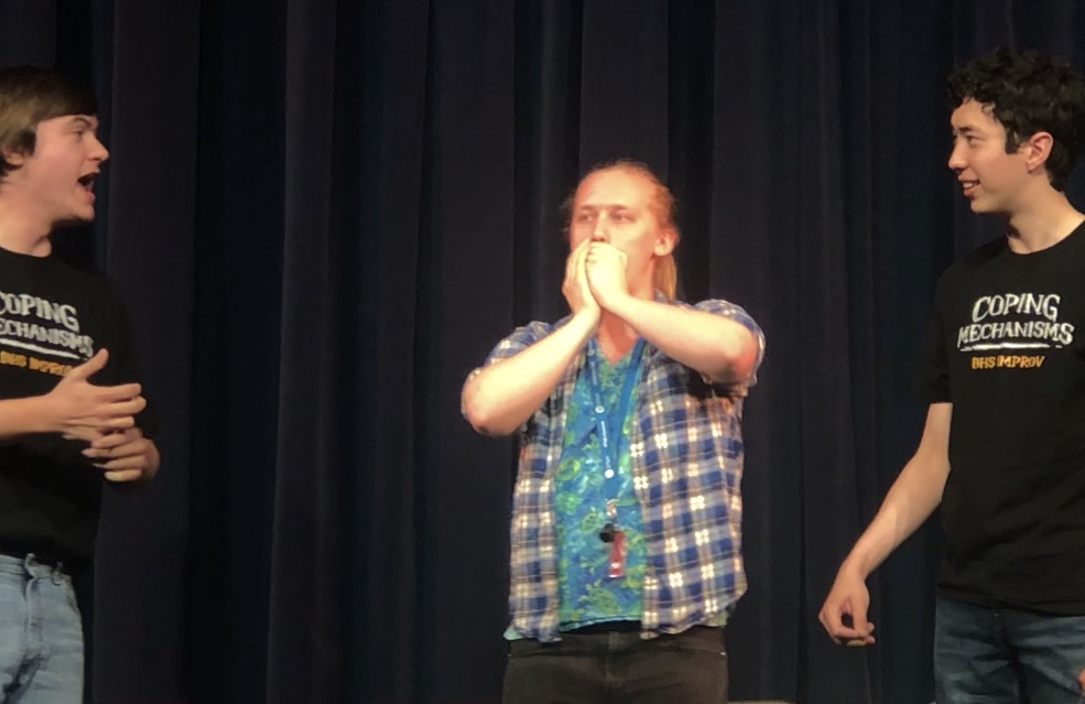 Improv Show Gallery – February 21st by The Paw Posted on February 28, 2020March 5, 2020 BY ALISON CHURCH Sarah Hoyle and Logan Bledsoe perform yoga. Anna Rafelsberger is challenged to a dance off. An audience member volunteers to perform on stage. An audience member volunteers to perform on stage. Sean Hanrahan gets down on one knee. Kian Braulik falls to the stage. The Improv team gathers for a mexican standoff . Logan Bledsoe commands an army of gollums. The team divides and has an intense rap battle. They continue their rap battle. An audience member volunteers to beat box on stage. A warrior calls upon a grass gremlin for answers. Share this: Click to share on X (Opens in new window) X Click to share on Facebook (Opens in new window) Facebook Like Loading... Related