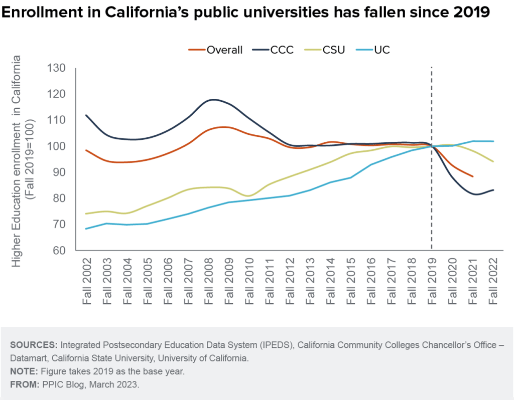 Institutions must anticipate future issues, adjust methods, and innovate to be robust in today’s dynamic higher education context. From 2019 to 2023, enrollment in the California State University system fell by 6%, highlighting the various issues that higher education institutions face. Understanding the factors contributing to this reduction and applying preventative actions will enable the CSU system to solve the issue while remaining true to its objective of offering accessible, affordable, and high-quality education.