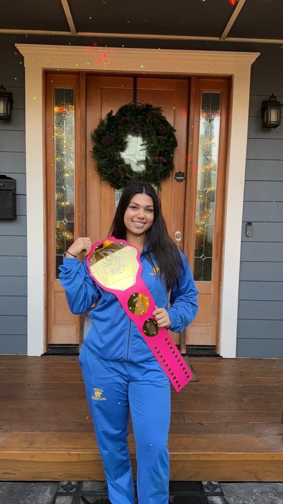 This school year, Sloane has built a record of 15-3, fifteen wins and only 3 losses. One of her biggest accomplishments is either getting 2nd at state and winning her women’s bracket in January 2026 or getting a champion belt.